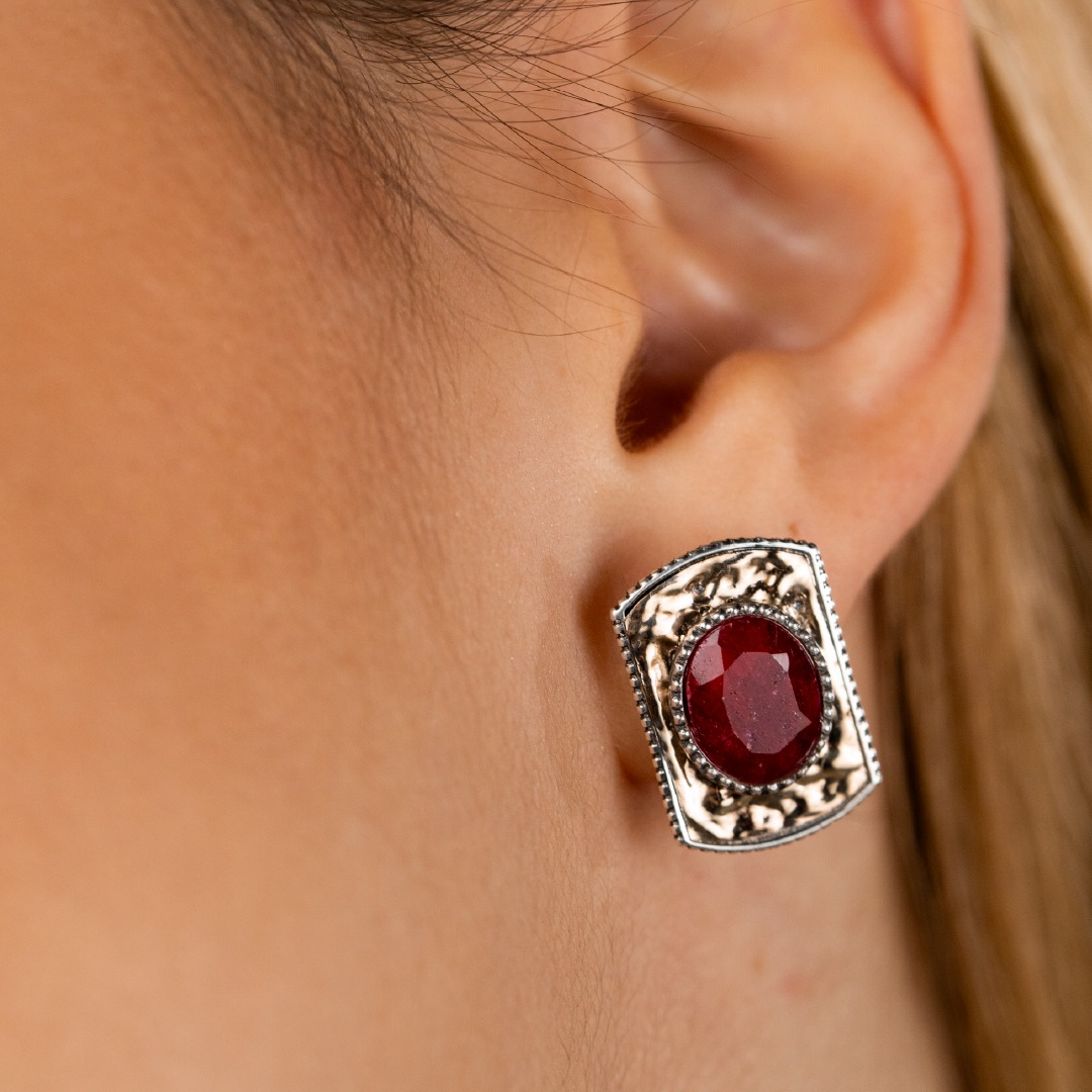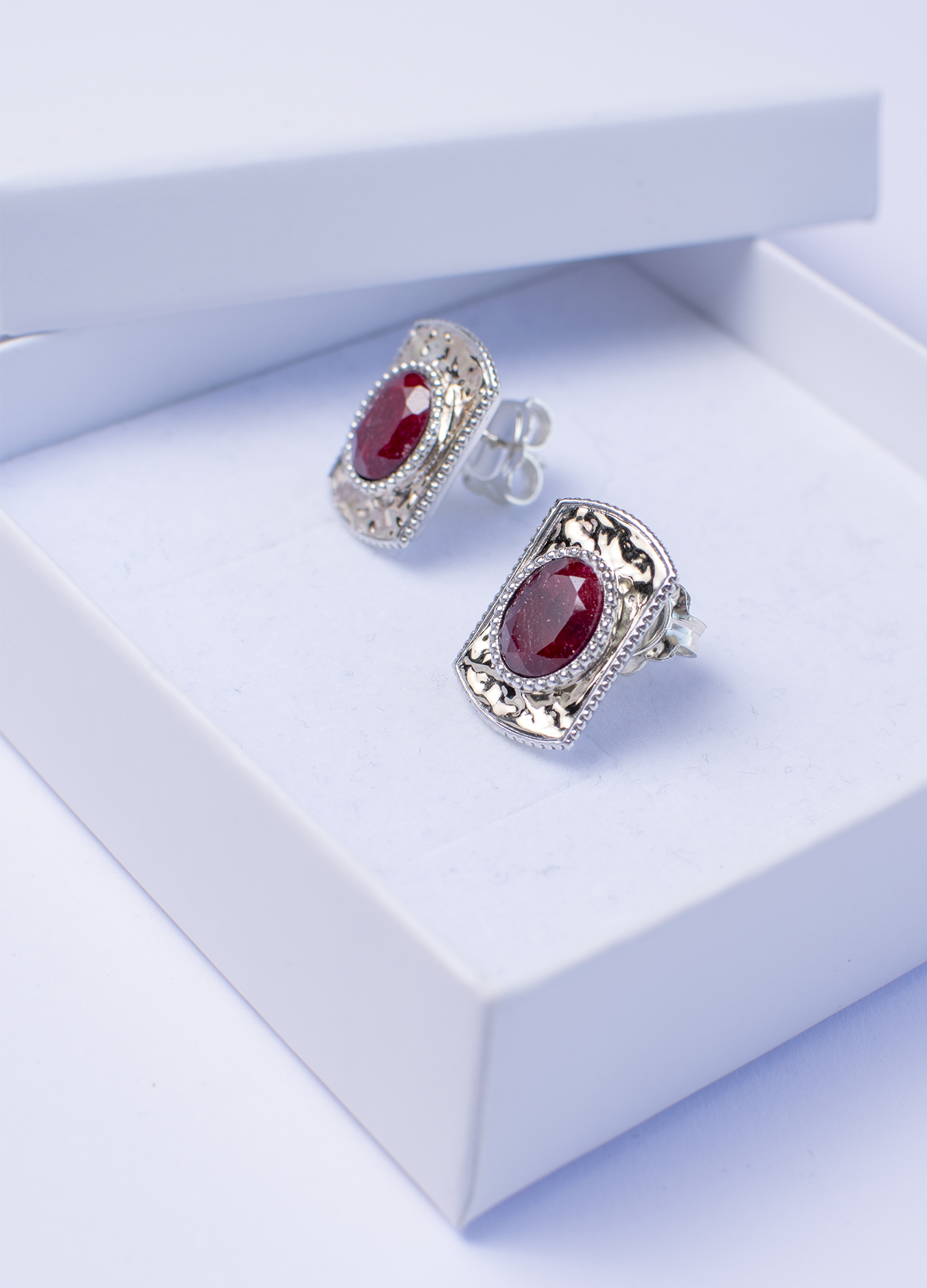 Earrings with Corundum or Ruby Root. This is a natural stone.