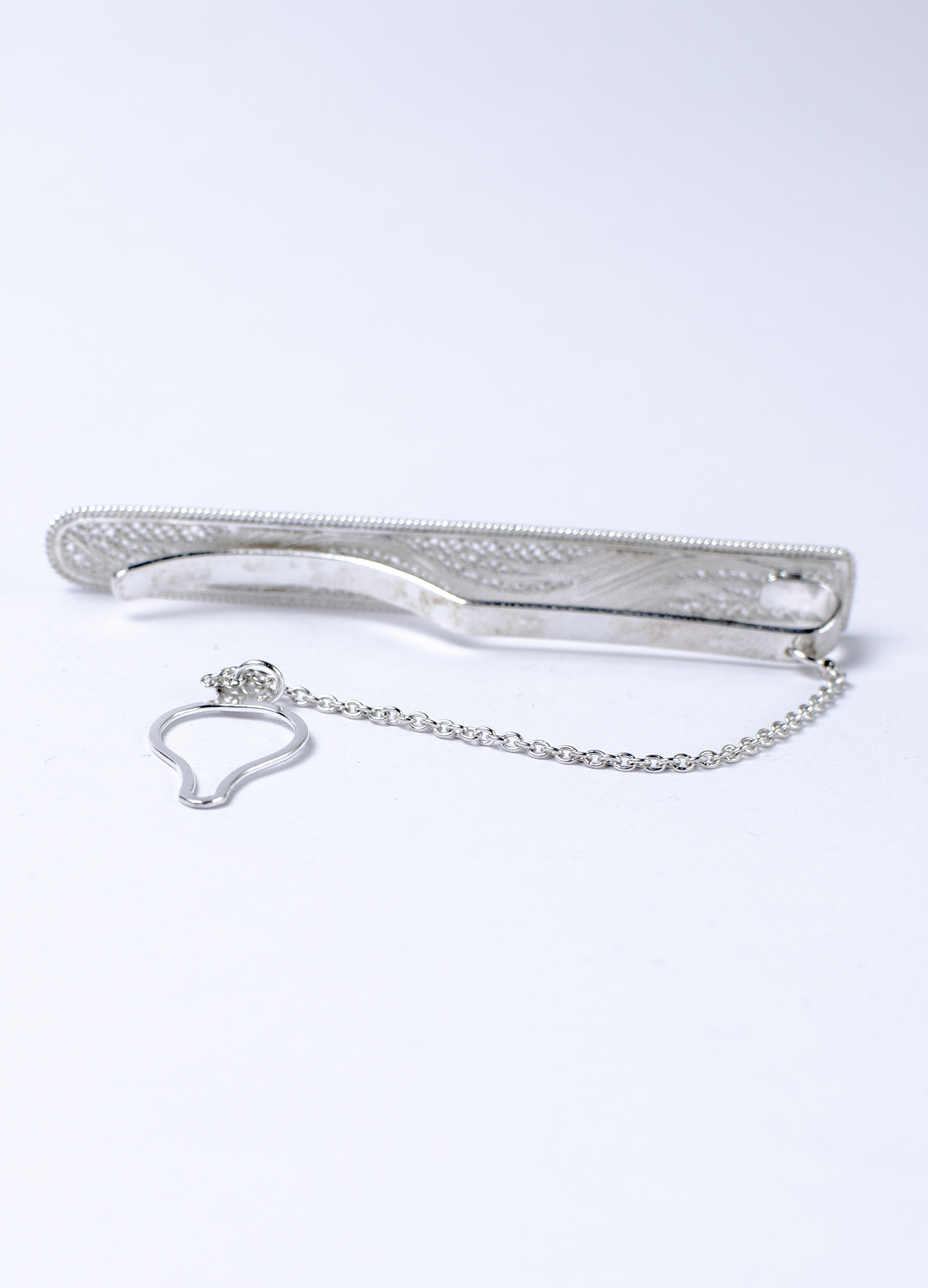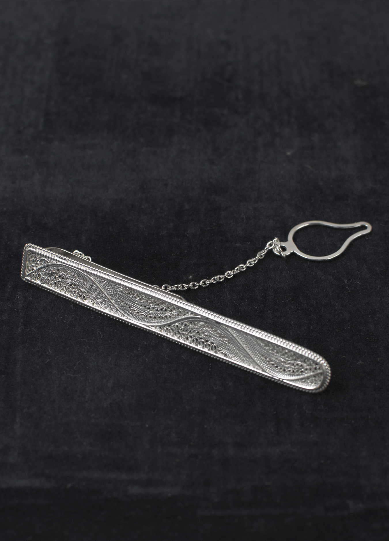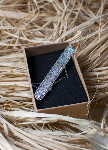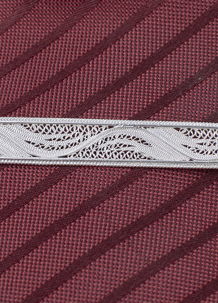 Filigree is most often used in women's jewelry. This stylish tie clip is one of the few exceptions to the rule.