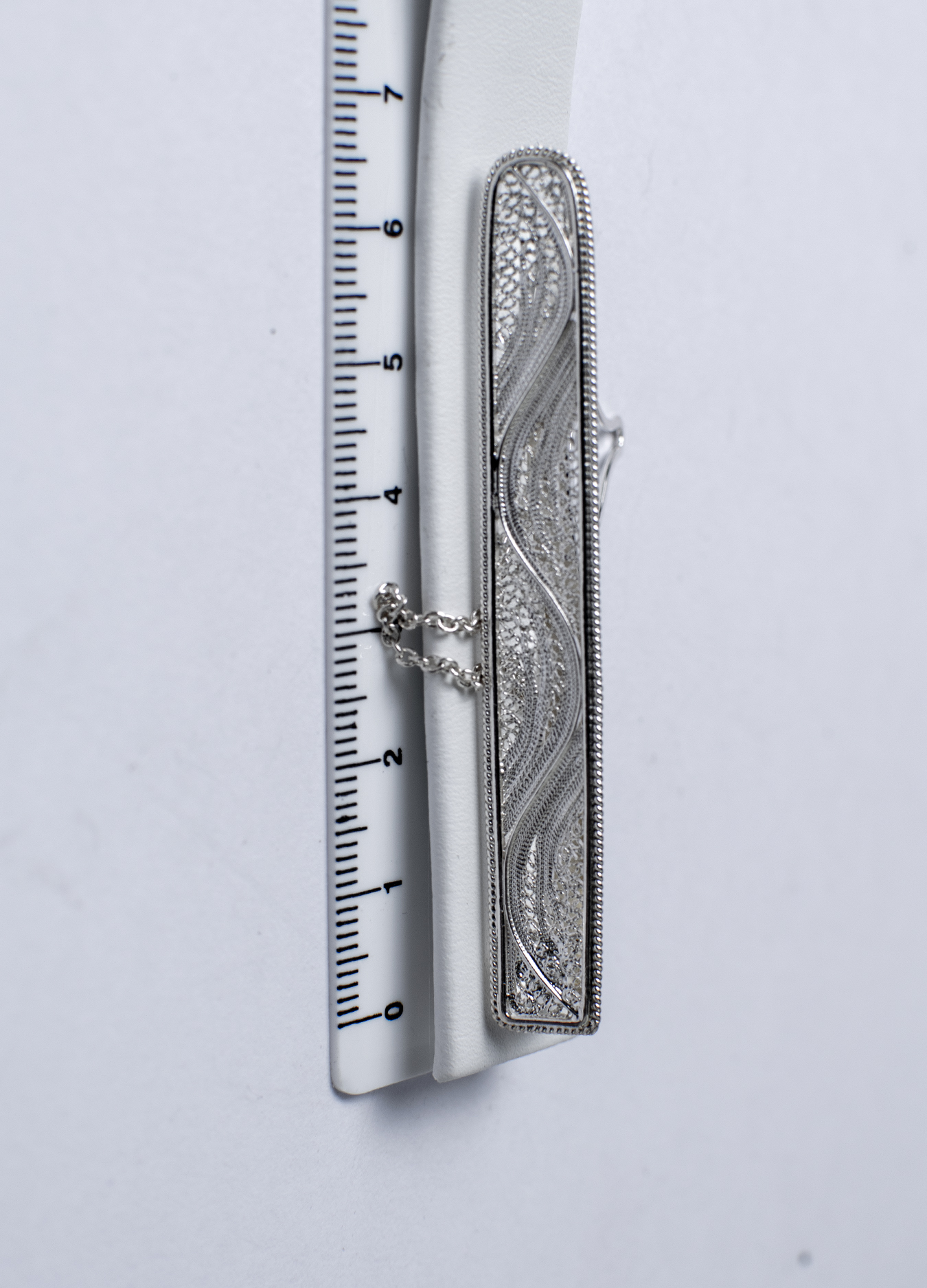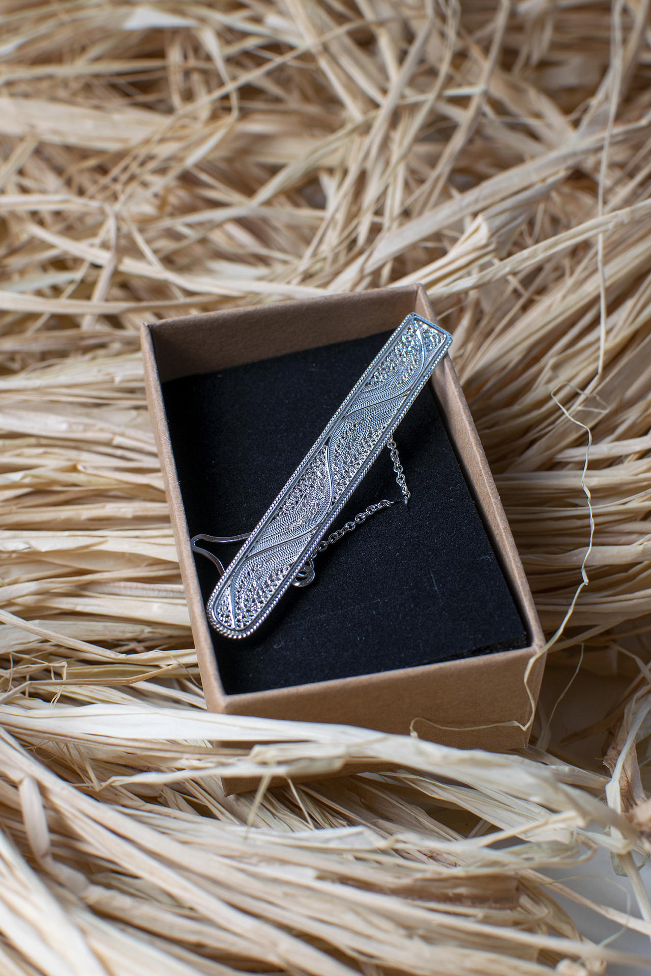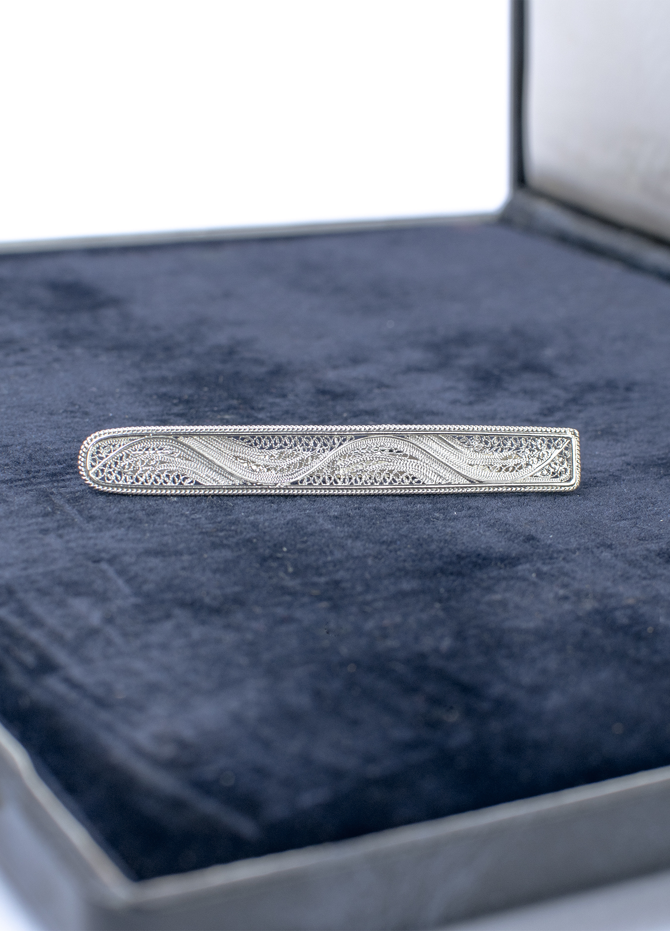 Filigree is most often used in women's jewelry. This stylish tie clip is one of the few exceptions to the rule.
