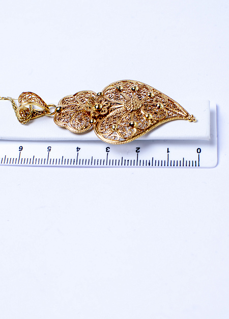 On top of the jewelry there is a “crown” symbolizing a flame. The entire product is filled with thin, elegant filigree threads.