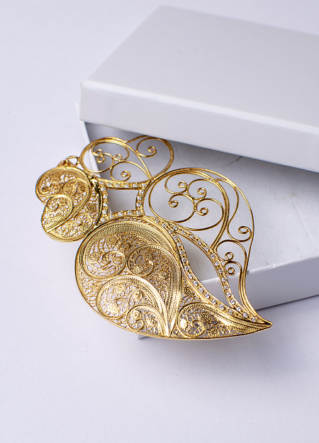 On top of the jewelry there is a “crown” symbolizing a flame. The entire product is filled with thin, elegant filigree threads.