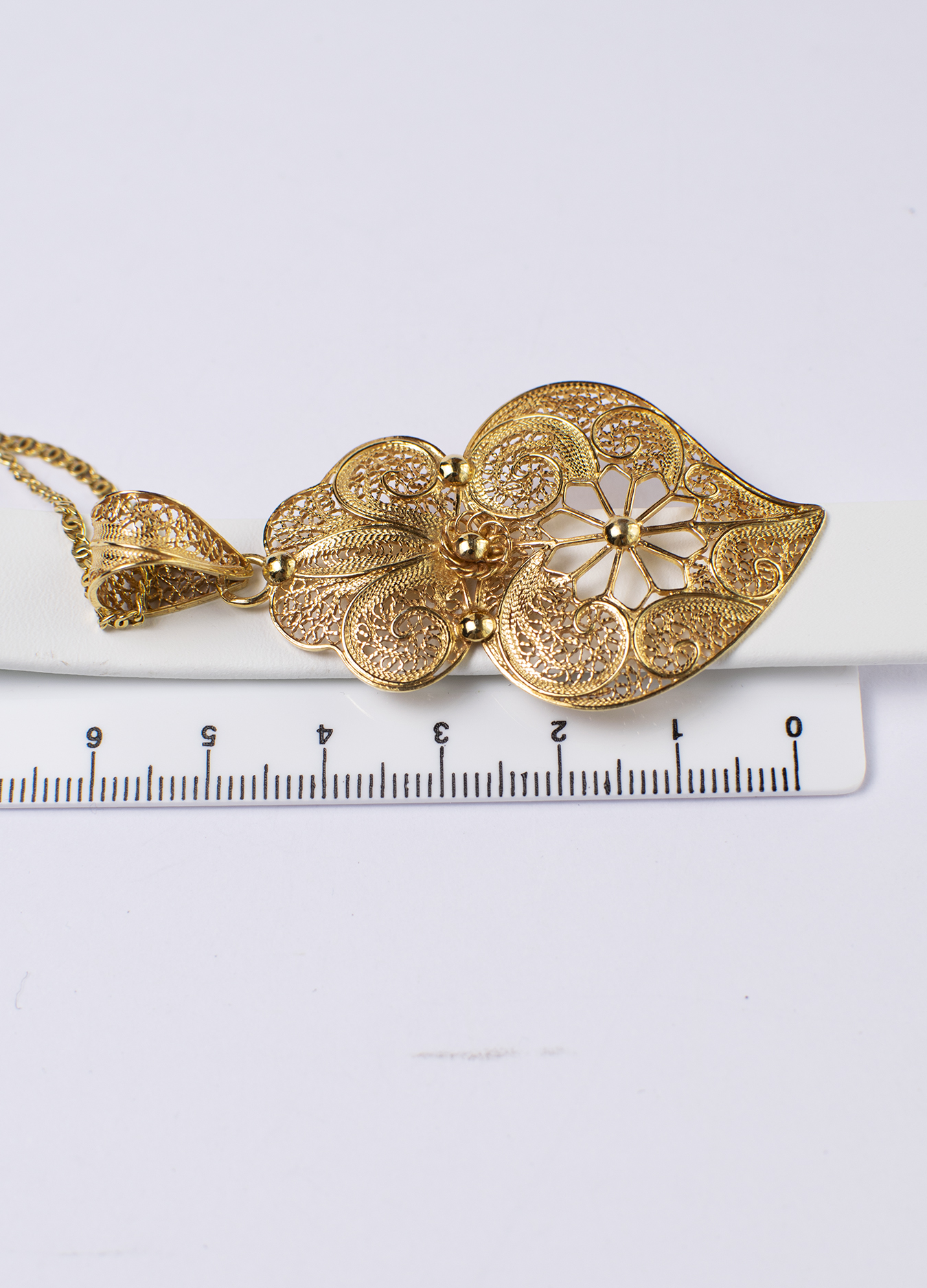 On top of the jewelry there is a “crown” symbolizing a flame. The entire product is filled with thin, elegant filigree threads.